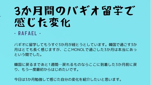 MONOLに3か月間留学した韓国人学生Rafaelの体験談です。